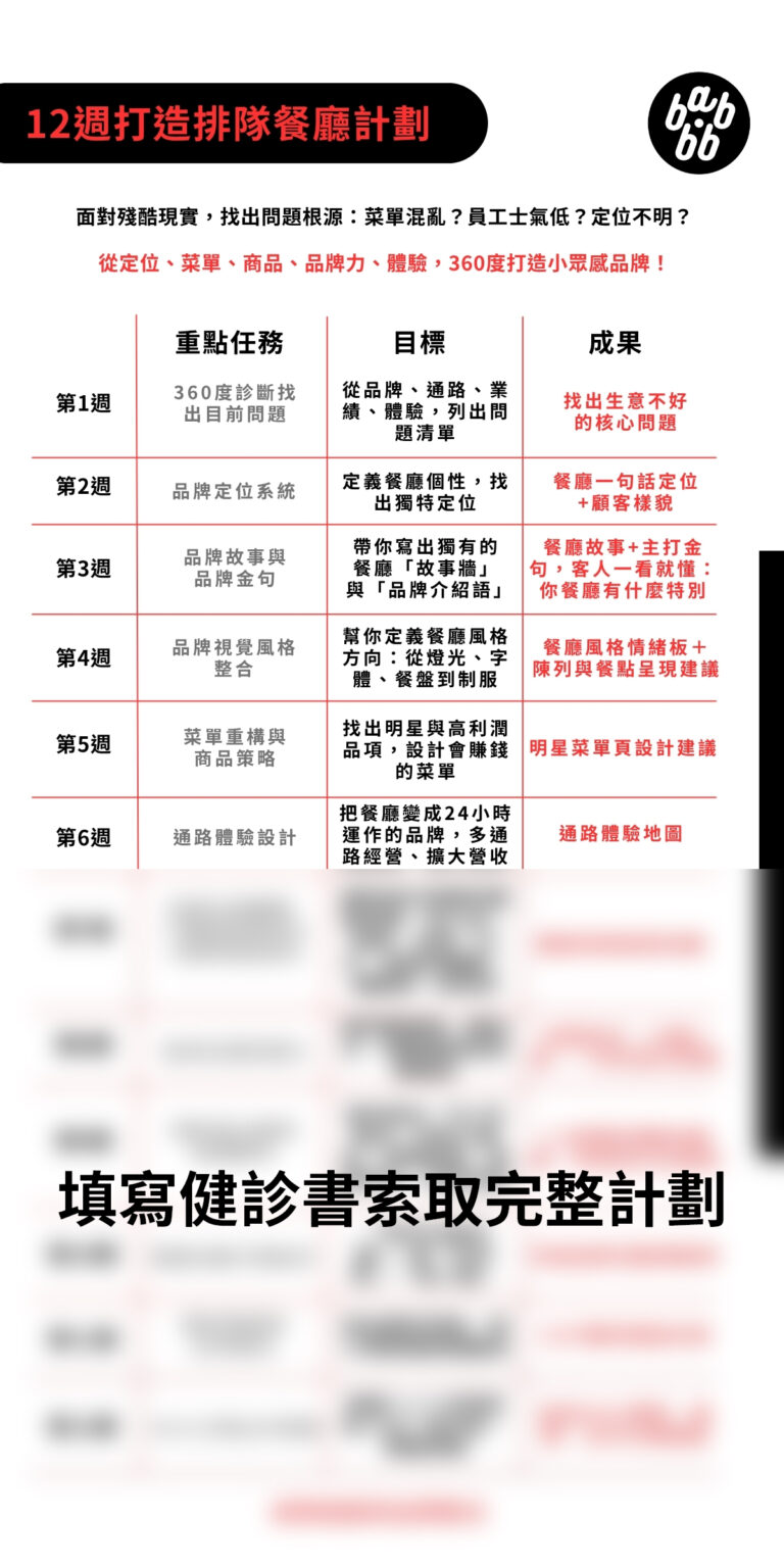 12週品牌教練陪跑計畫 創業很辛苦,別再獨自硬撐。給自己一個機會,跳脱困境,讓 Chizup! 品牌創辦人 路易老闆當你的教練,帶你找出卡關盲點、打造真正獲利的小眾感品牌。預約專屬陪跑名額,趕快讓品牌開始賺錢。 12 週打造電商品牌教練計劃 [創始合作優惠價,限開放5個名額]是不是覺得品牌卡在瓶頸: 商品沒風格、內容沒人看、定價太高、廣告沒轉單? 這個教練計劃會幫你用 12 週建立完整系統: 從品牌定位 → 內容策略 → 廣告轉化 → KOC 合作 找回初衷,重新打造讓人想買、記得住的品牌每週陪跑顧問會議 + LINE 即時討論 12 週打造排隊餐廳品牌教練計劃 [創始合作優惠價,限開放5個名額]你是不是也覺得: 菜單太亂、客人不記得品牌、員工氣氛低迷、店裡看起來沒有特色? 這個教練計劃會幫你從「定位、菜單、品牌、體驗」 一次打造能讓顧客記住的餐廳!每週陪跑顧問會議 + LINE 即時討論 Why Choose 路易老闆? 路易老闆過去不只在行銷、廣告公司、品牌方有十多年服務經驗,更在 2015年創立 chizup! 甜點品牌的成功經驗,透過全方位的打造品牌和商業策略指導與資源分享,幫助已有商品或服務的餐飲中小企業,打造出獨特且會賺錢的生意。如果你缺乏方向,找不到卡關的問題,讓 Chizup 創辦人路易老闆 親自陪跑,協助你突破品牌困境,實現品牌目標!用行為經濟學拆解消費者心理,幫你精準抓住顧客痛點,用創意打造最有效的行銷策略。 預約諮詢流程 子彈品牌診斷 1. 填寫品牌子彈健診書2.Line@ 聯繫3.安排諮詢會議 路易老闆的Line@